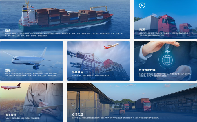 根據(jù)客戶需求提供海運(yùn)、空運(yùn)、陸運(yùn)、鐵路運(yùn)輸、多式聯(lián)運(yùn)、倉儲、配送、報(bào)關(guān)報(bào)檢、貨運(yùn)保險(xiǎn)代理等物流定制化、個性化解決方案。