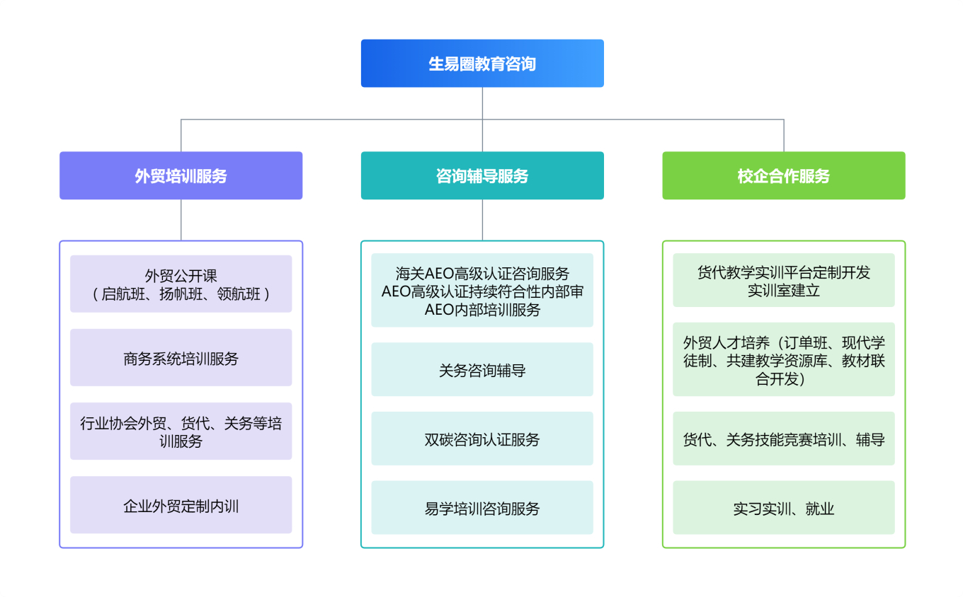 公司結(jié)合國際供應(yīng)鏈外貿(mào)綜合服務(wù)及人才優(yōu)勢,立足外向型企業(yè)人才需求,成立湖南生易圈教育咨詢有限公司。